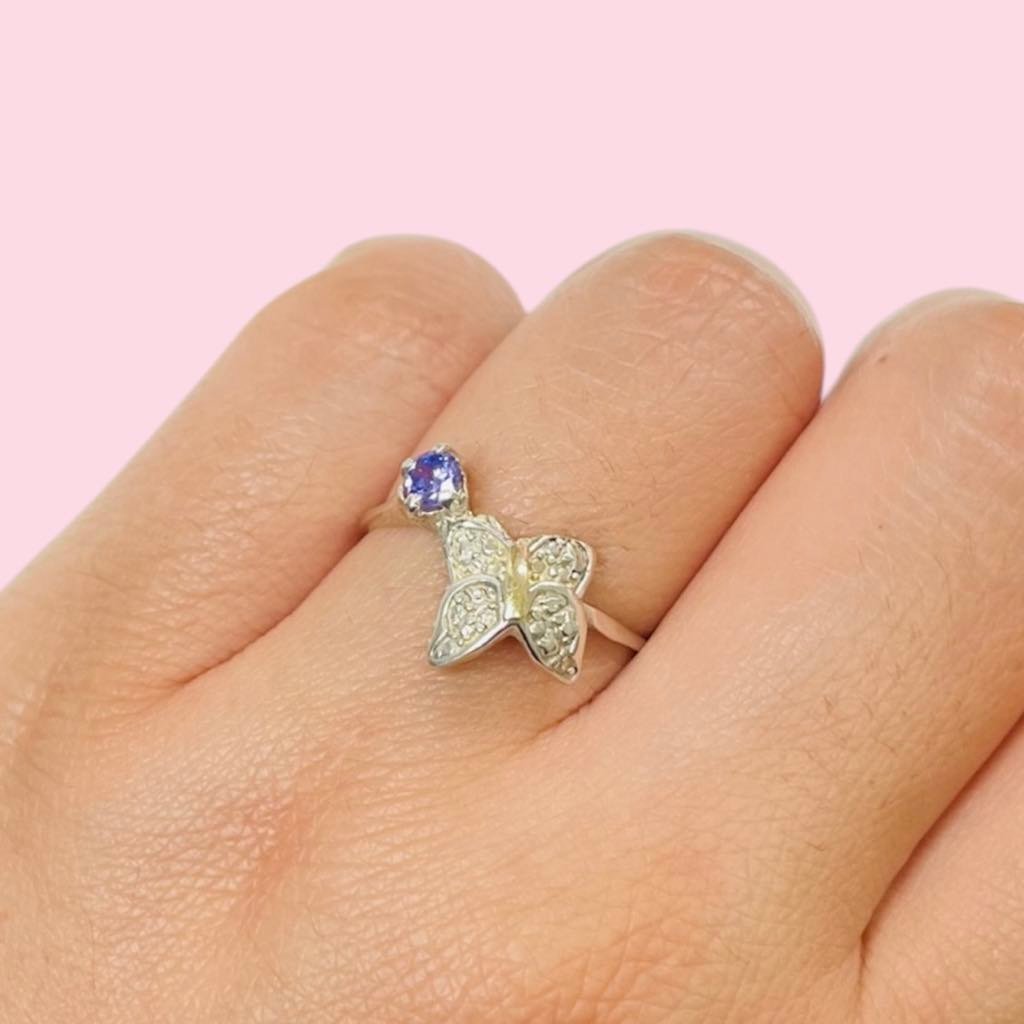 Artículo: AP 020-3Anillo Mariposa con Cubic 4mm Amatista Plata y Oro