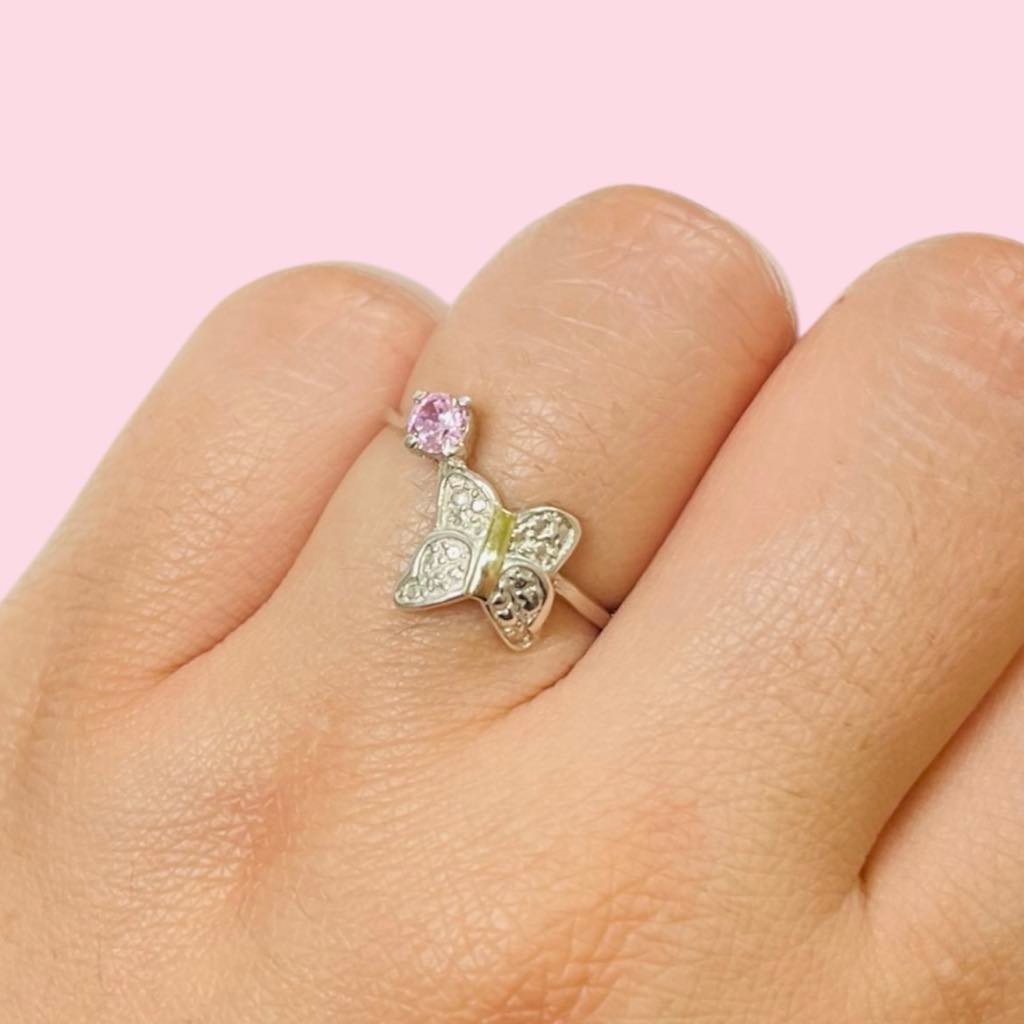 Anillo Mariposa Rosa Plata 925 y Oro