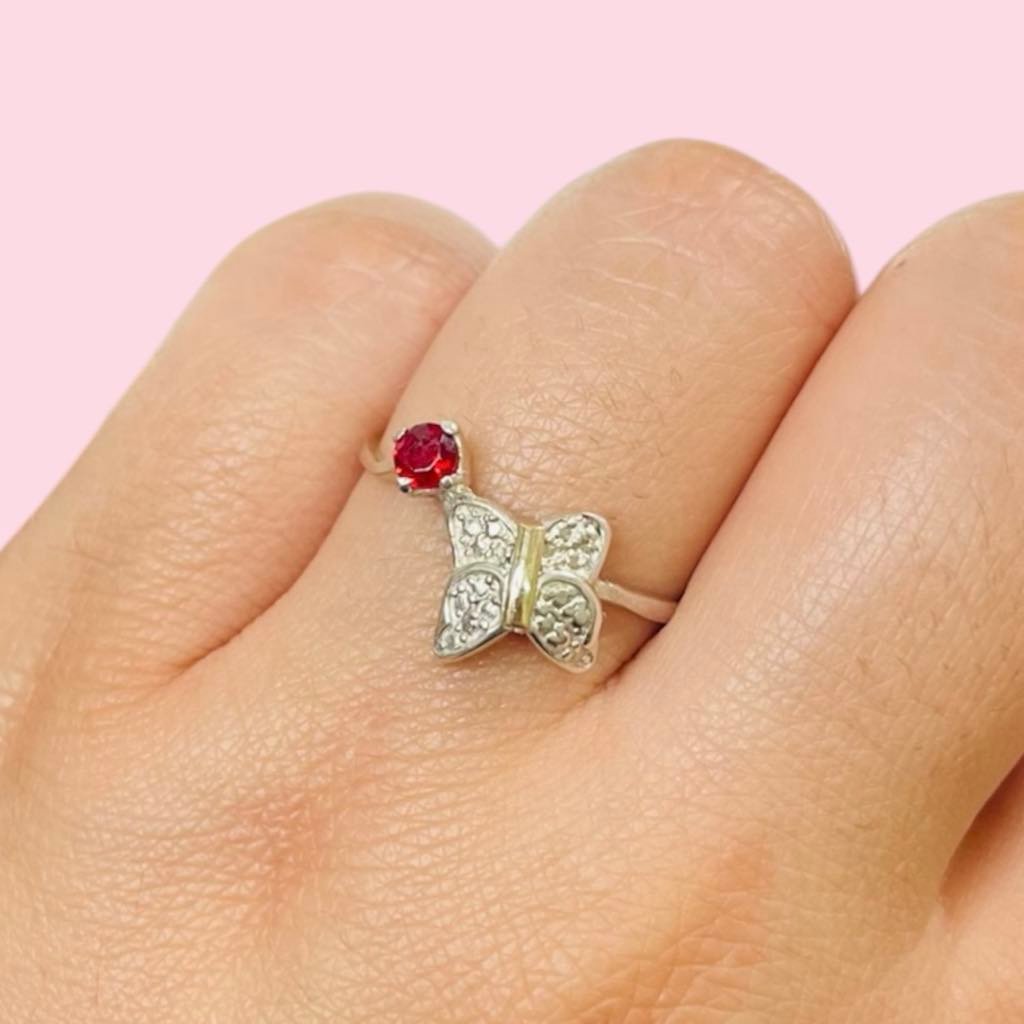 Anillo Mariposa Rubi Plata 925 y Oro
