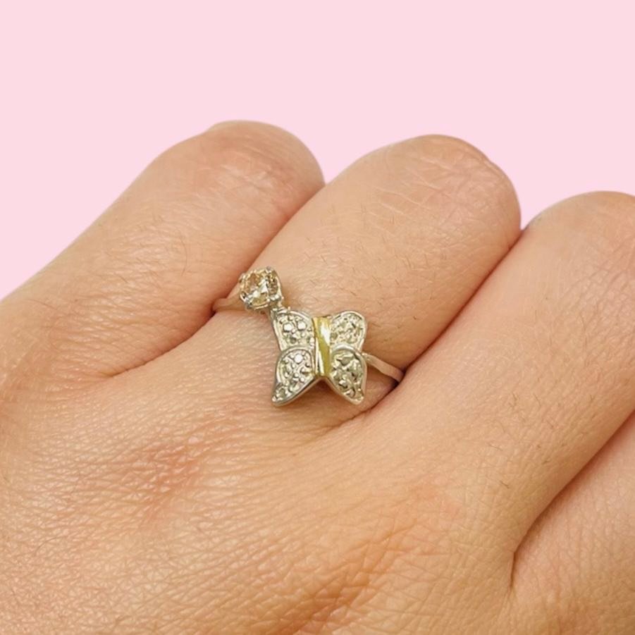 Artículo: AP 020-9Anillo Mariposa con Cubic 4mm Ambar Plata 925 y Oro