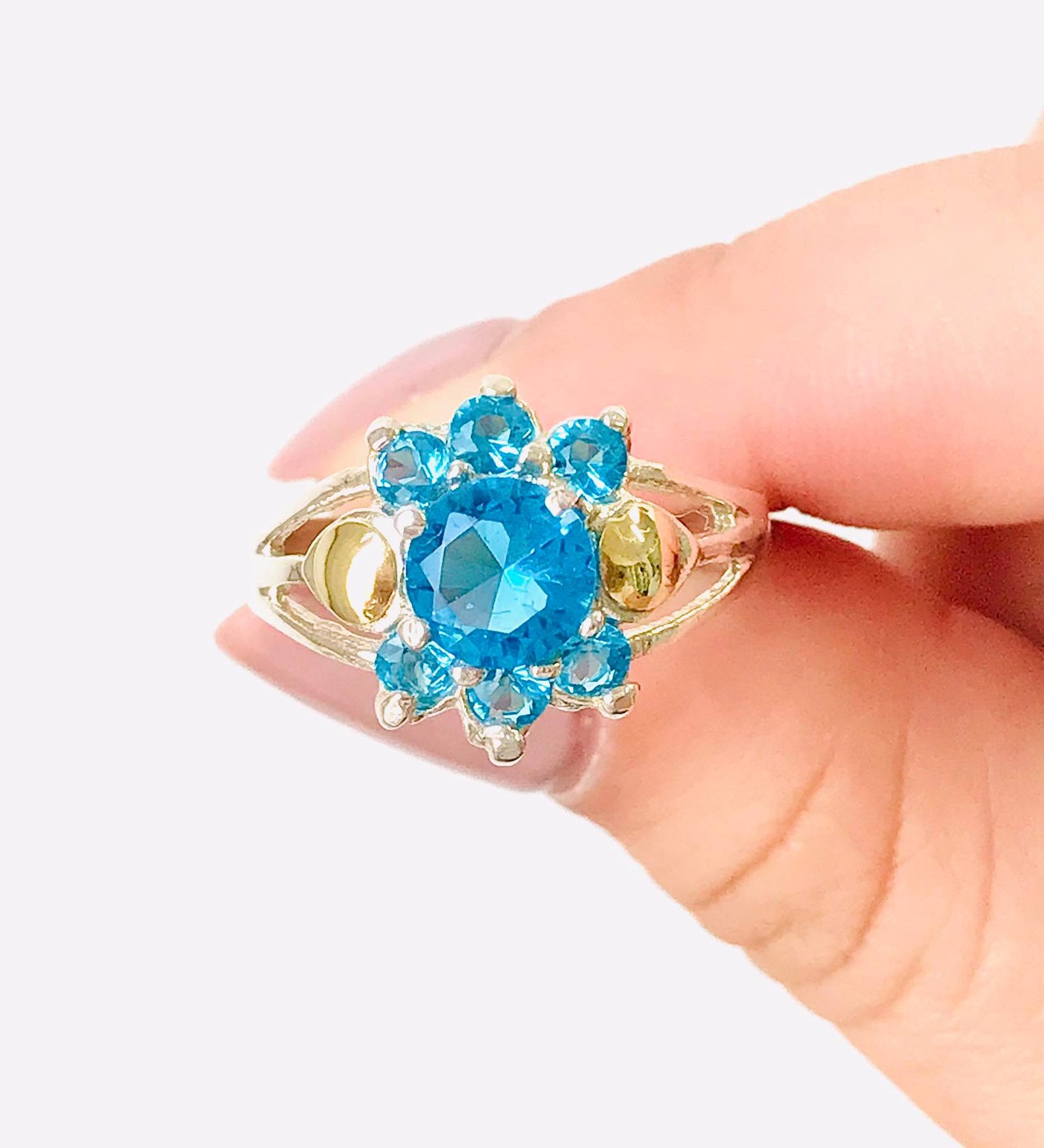 Anillo roseta Aguamarina de Plata y Oro