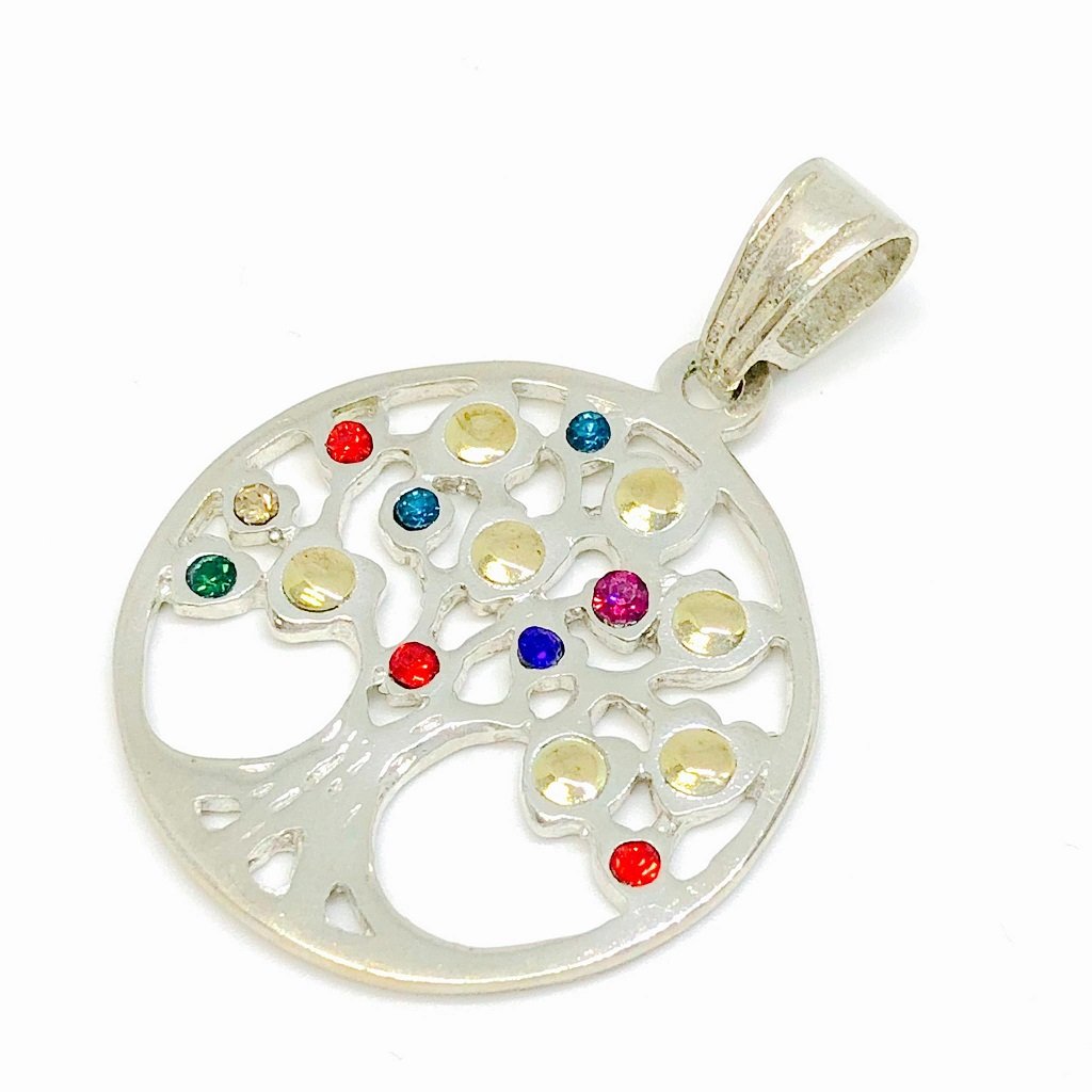 Dije arbol de la vida con piedras Multicolor 40mm Plata y Oro