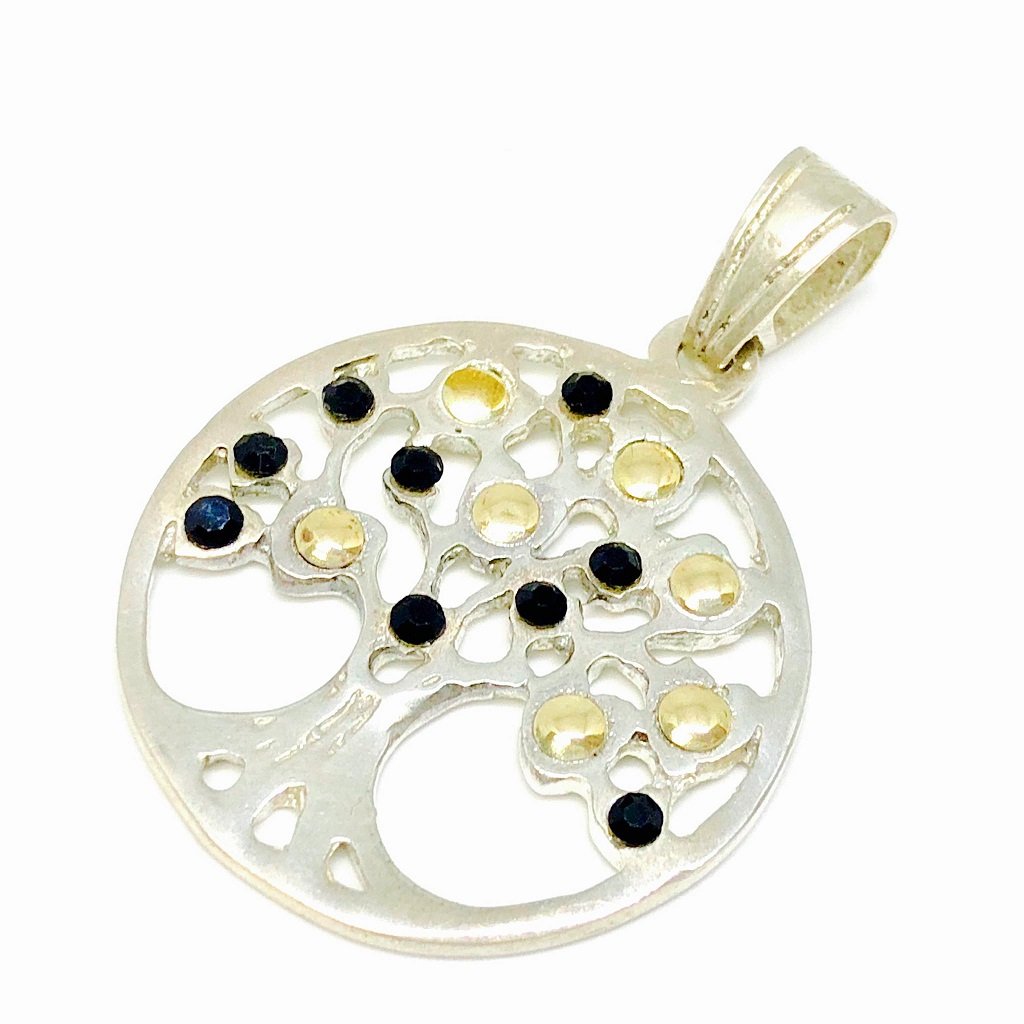 Dije arbol de la vida con piedras color Negro 40mm Plata y Oro
