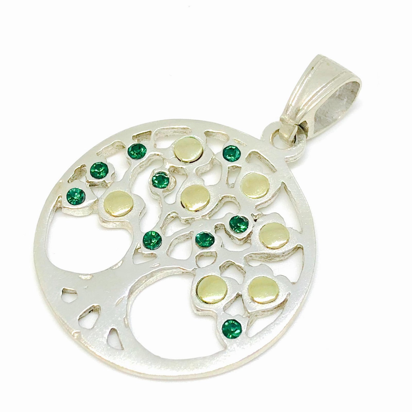 Dije arbol de la vida con piedras color Esmeralda 40mm Plata y Oro