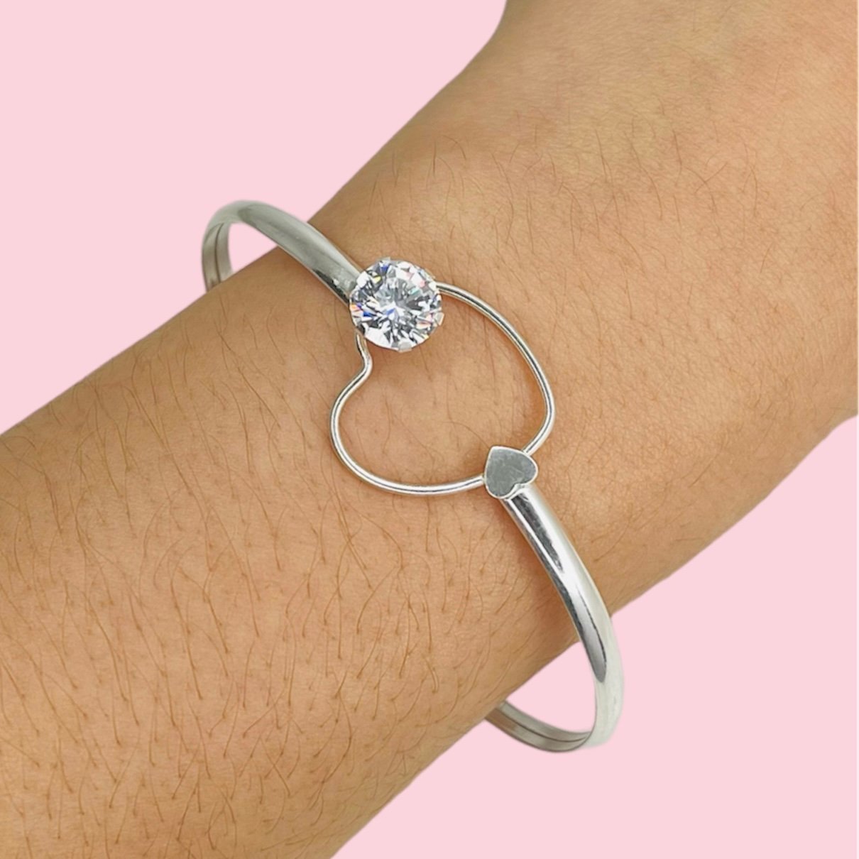 Esclava Con Corazon y Cubic 8mm Blanco de Plata