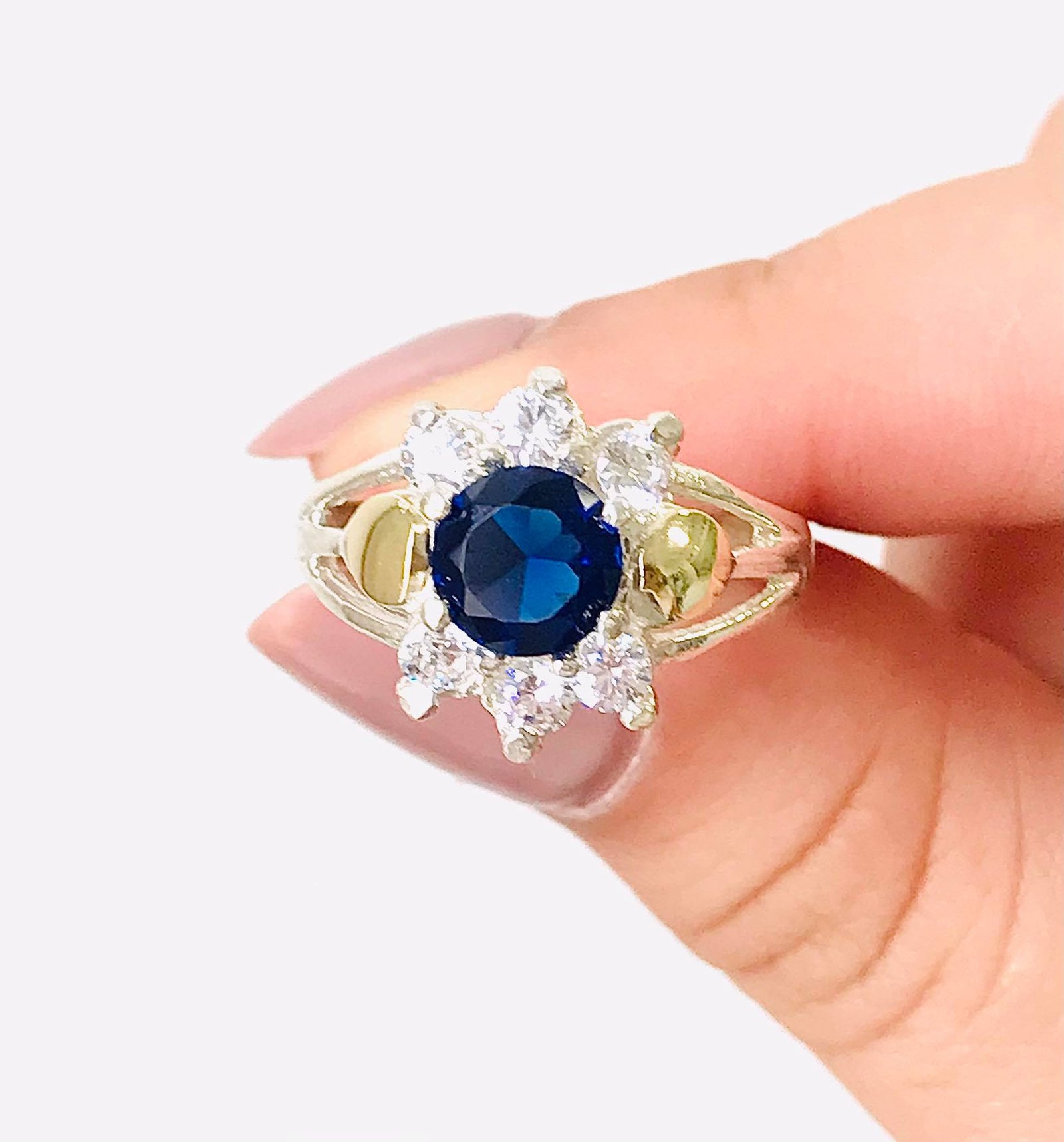 Anillo roseta Zafiro con Blanco de Plata y Oro