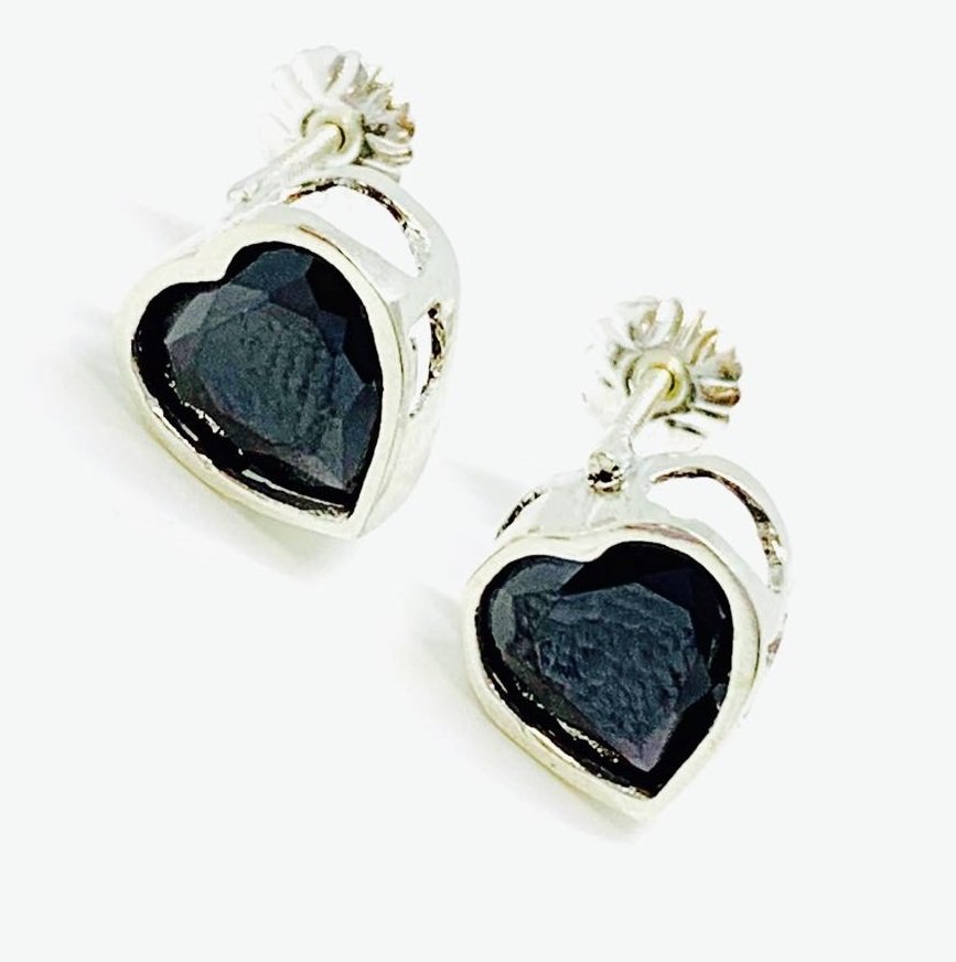 Aros Rosca con cubic de corazon 9mm Negro Plata 925