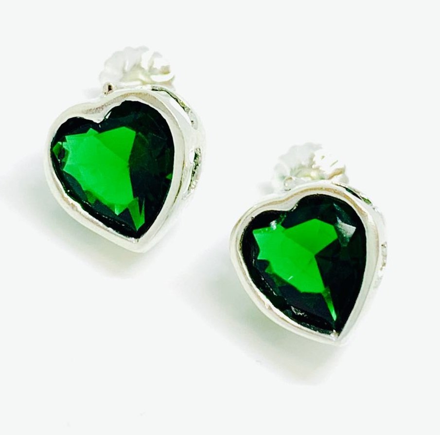 Aros Rosca con cubic de corazon 9mm Esmeralda Plata 925