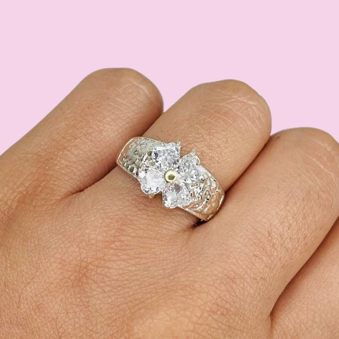 Anillo Trebol Blanco Plata y Oro