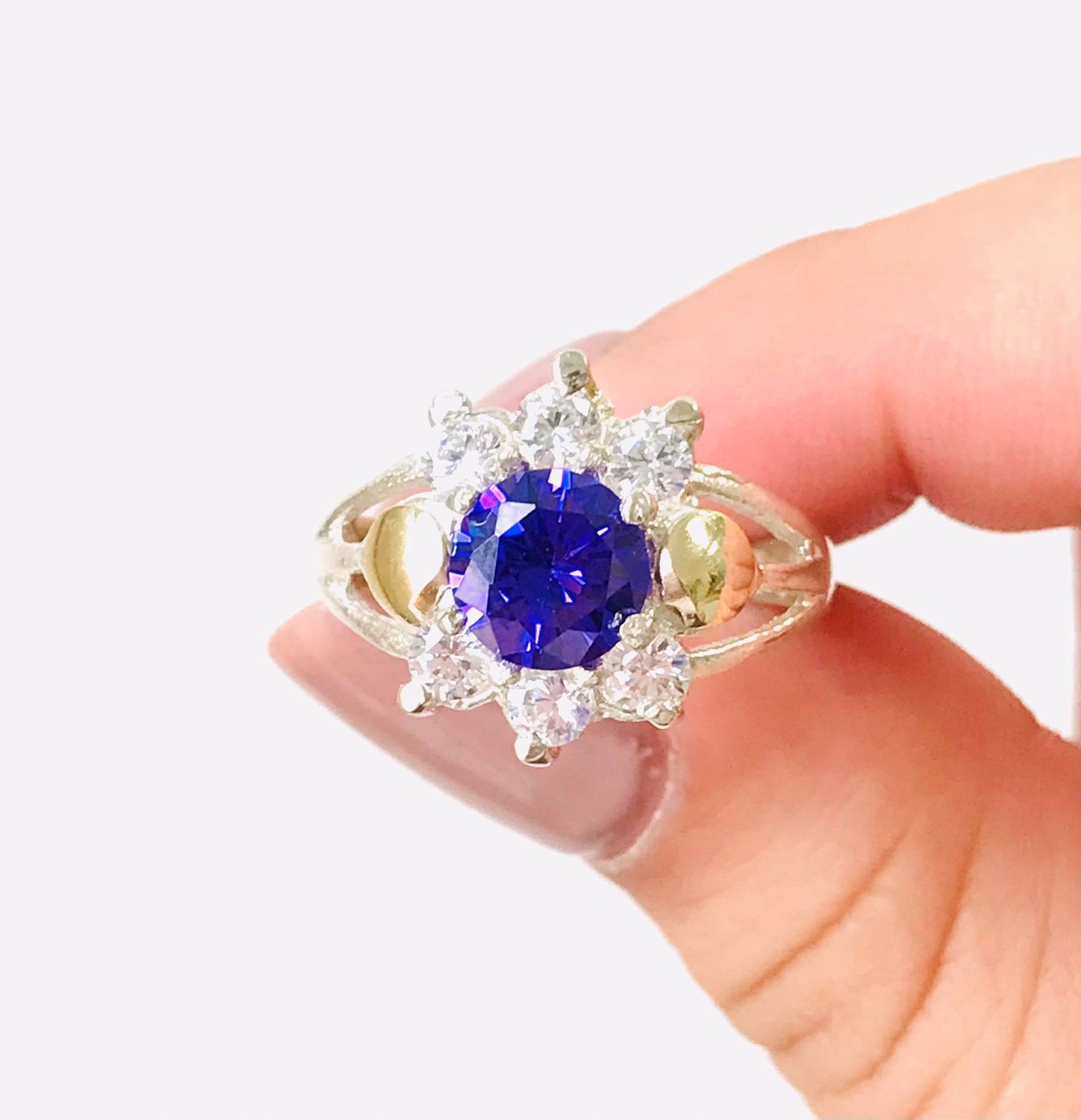 Artículo: AP 029-9Anillo roseta con cubic redondo amatista-Blanco