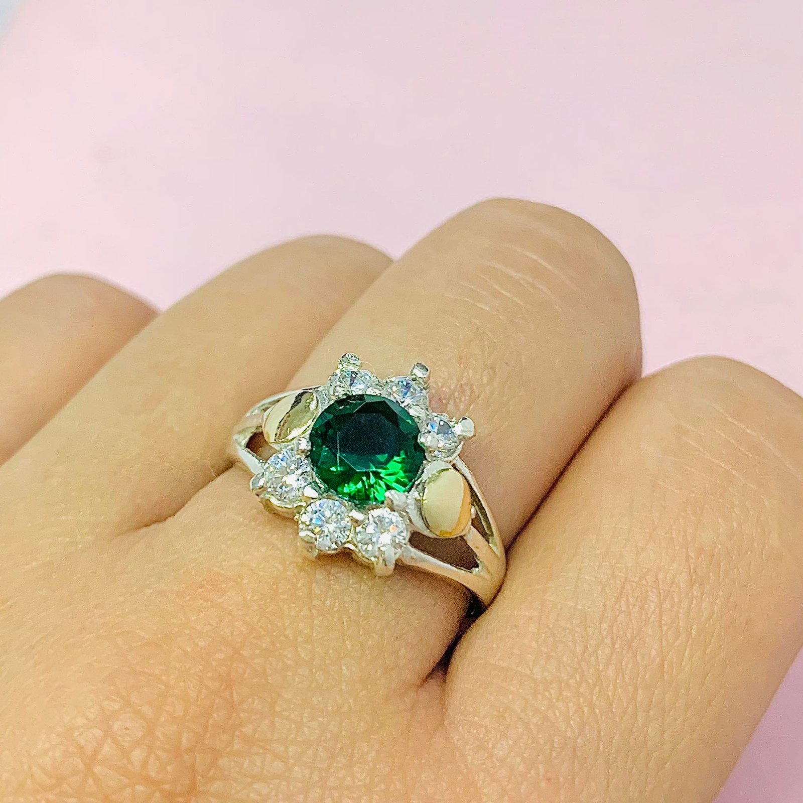 Artículo: AP 029-8Anillo roseta con cubic redondo Esmeralda-Blanco