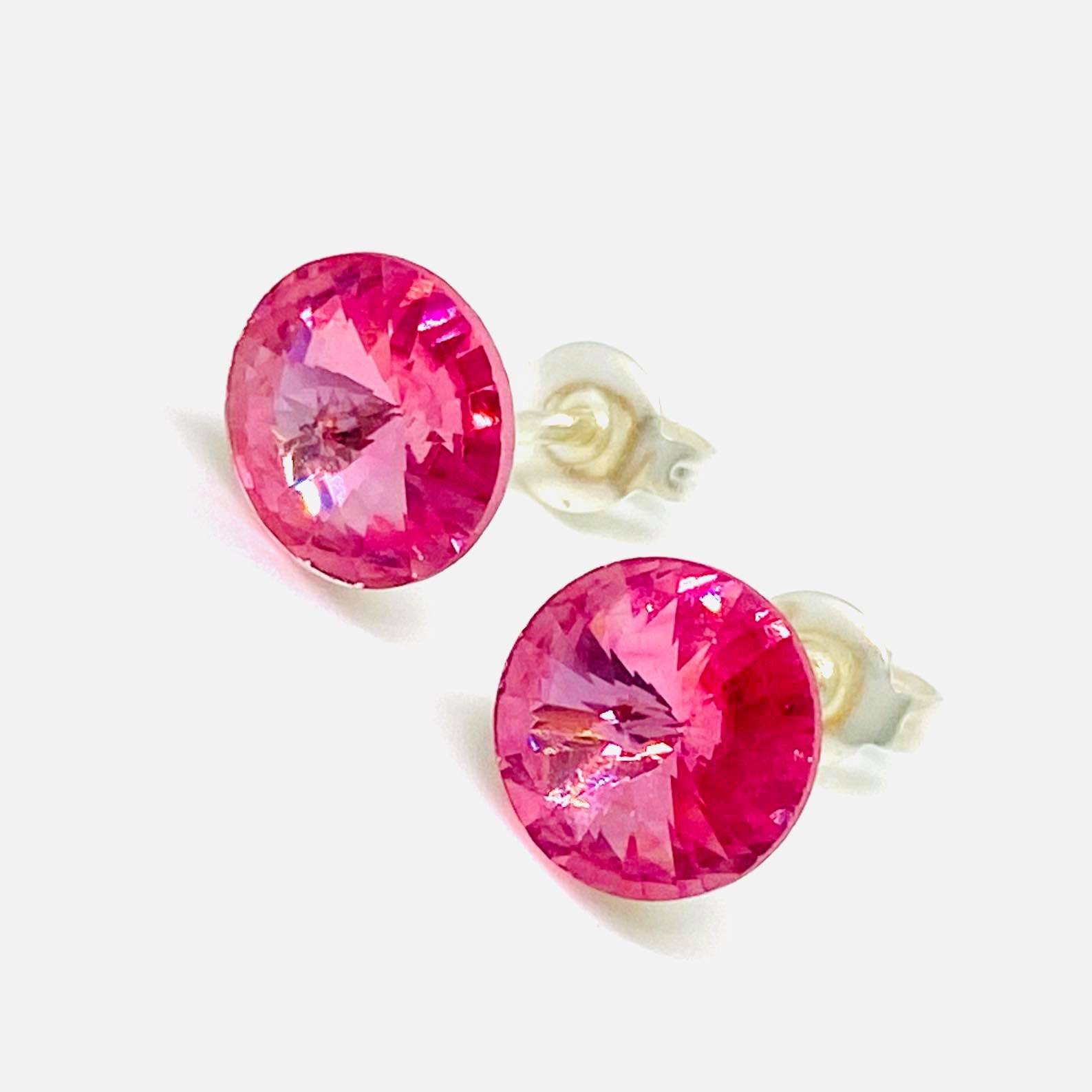 Aros Cristal Rivoli 8mm con Palito Rosa Plata 925