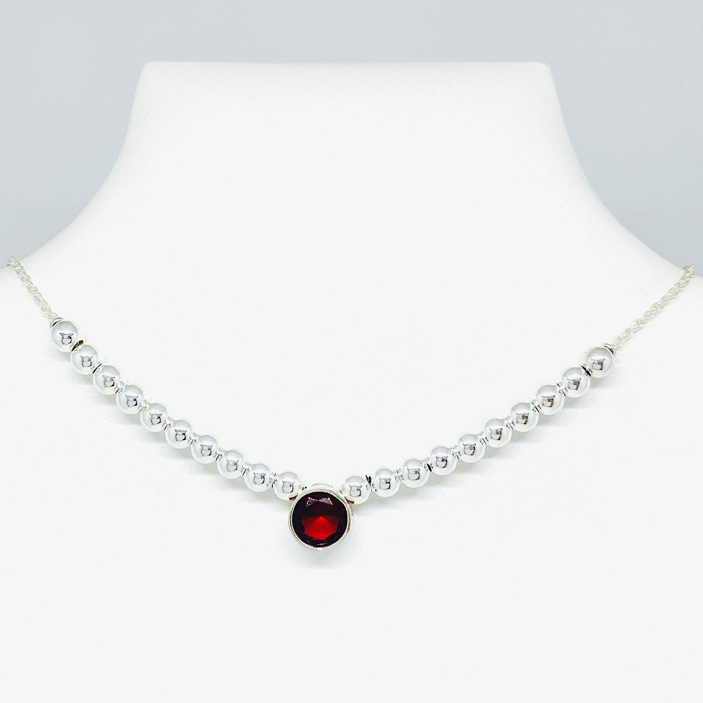 Choker con Bolitas de 5 mm y Dije Redondo 10mm Rubi