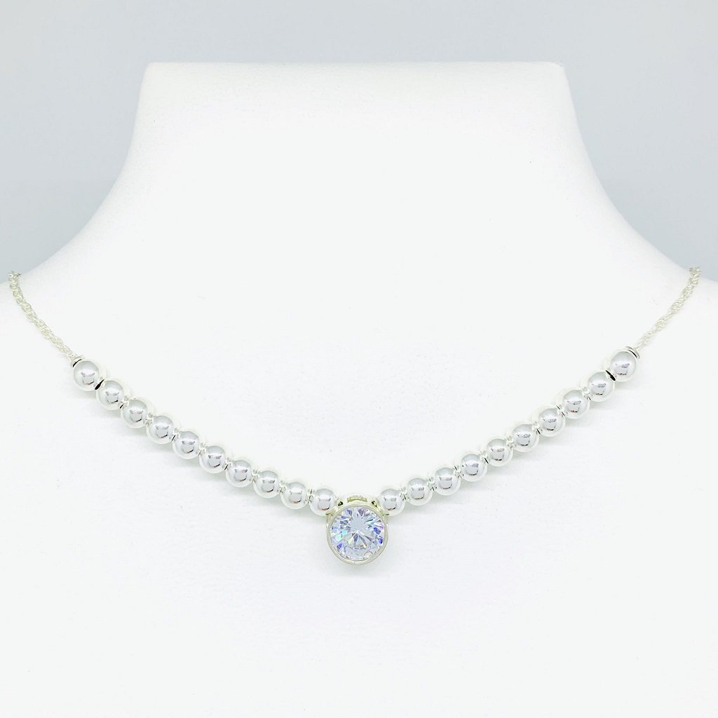 Choker con Bolitas de 5 mm y Dije Redondo 10mm Blanco