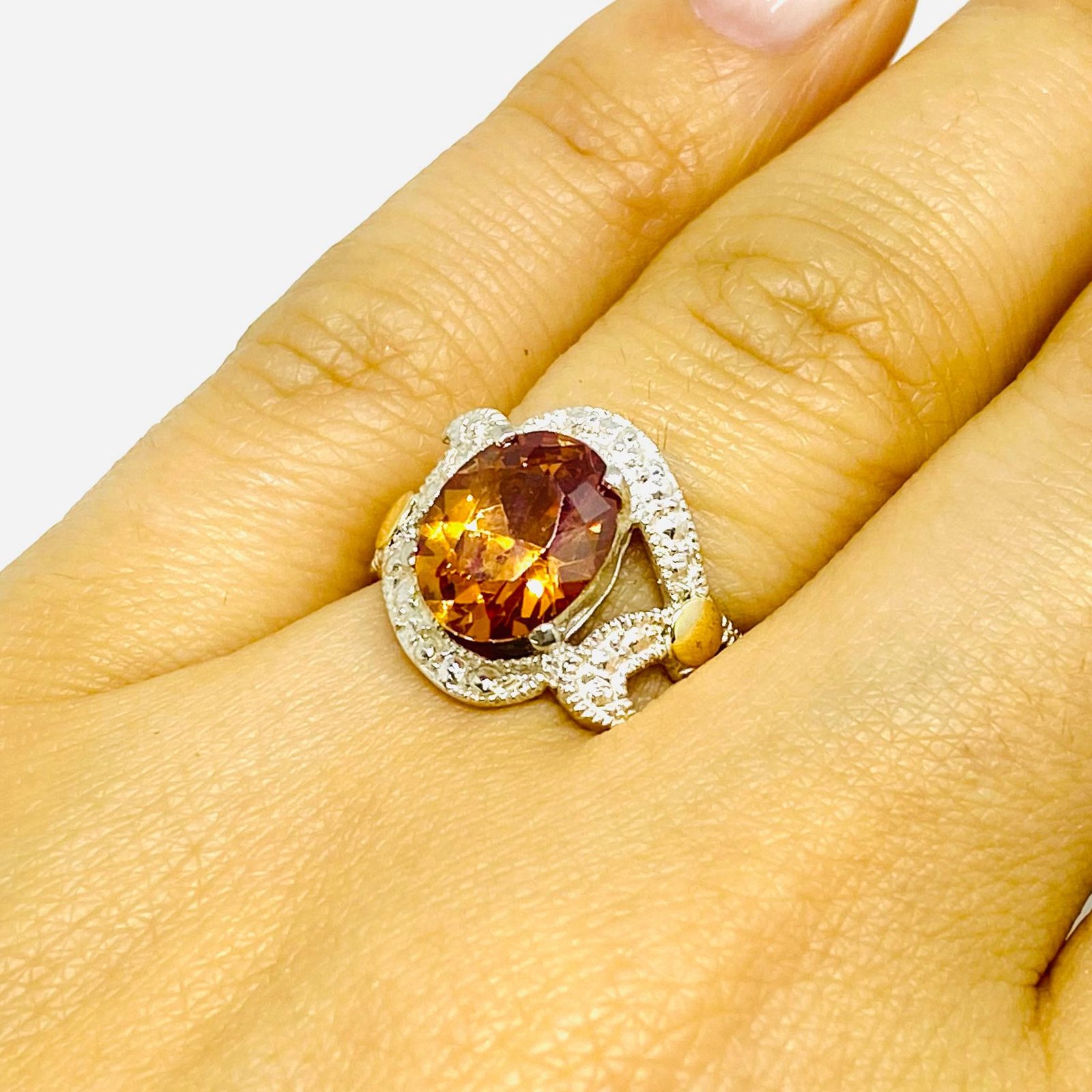 Anillo Carla con cubic ambar ovalado Plata y Oro