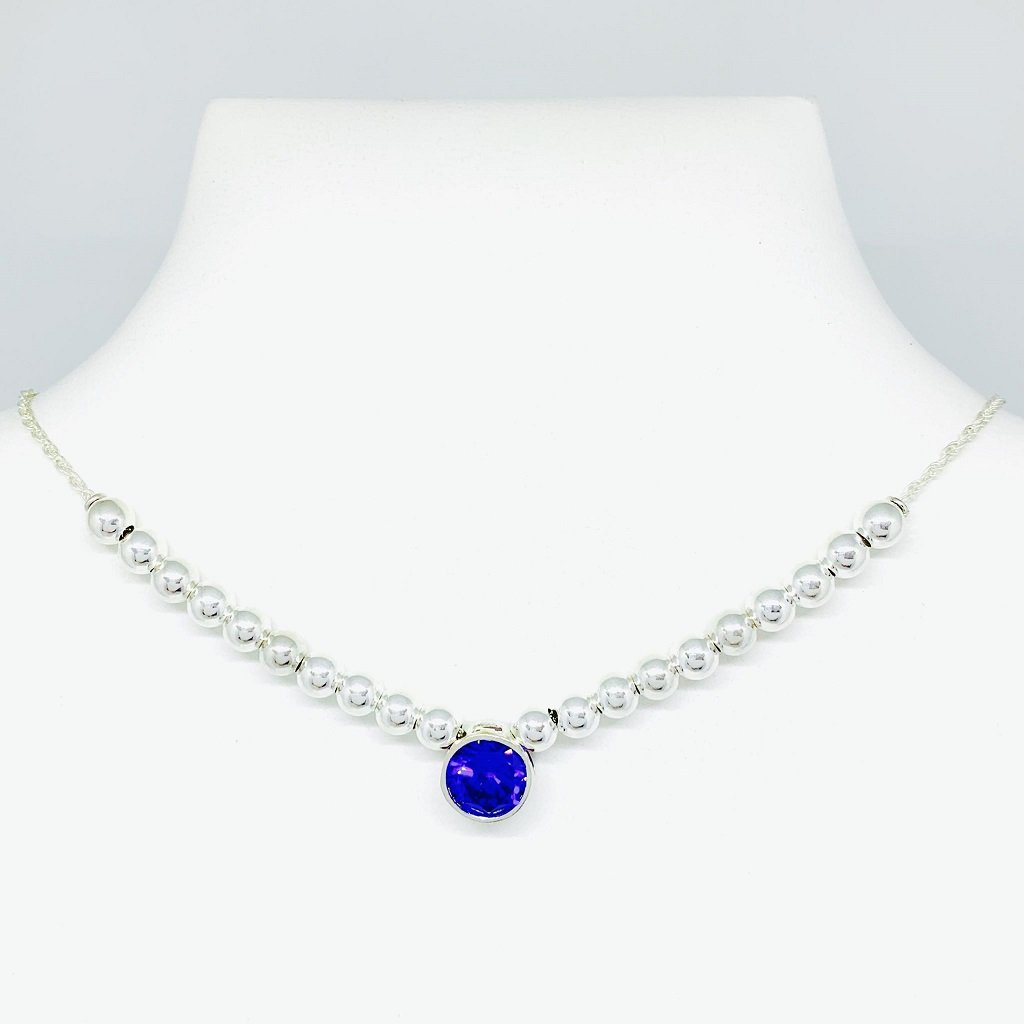 Choker con Bolitas de 5 mm y Dije Redondo 10mm Amatista