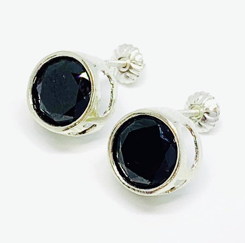 Aros Susanita a Rosca con cubic negro 10mm Plata 925