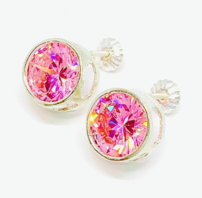 Aros Susanita a Rosca con cubic Rosa 10mm Plata 925