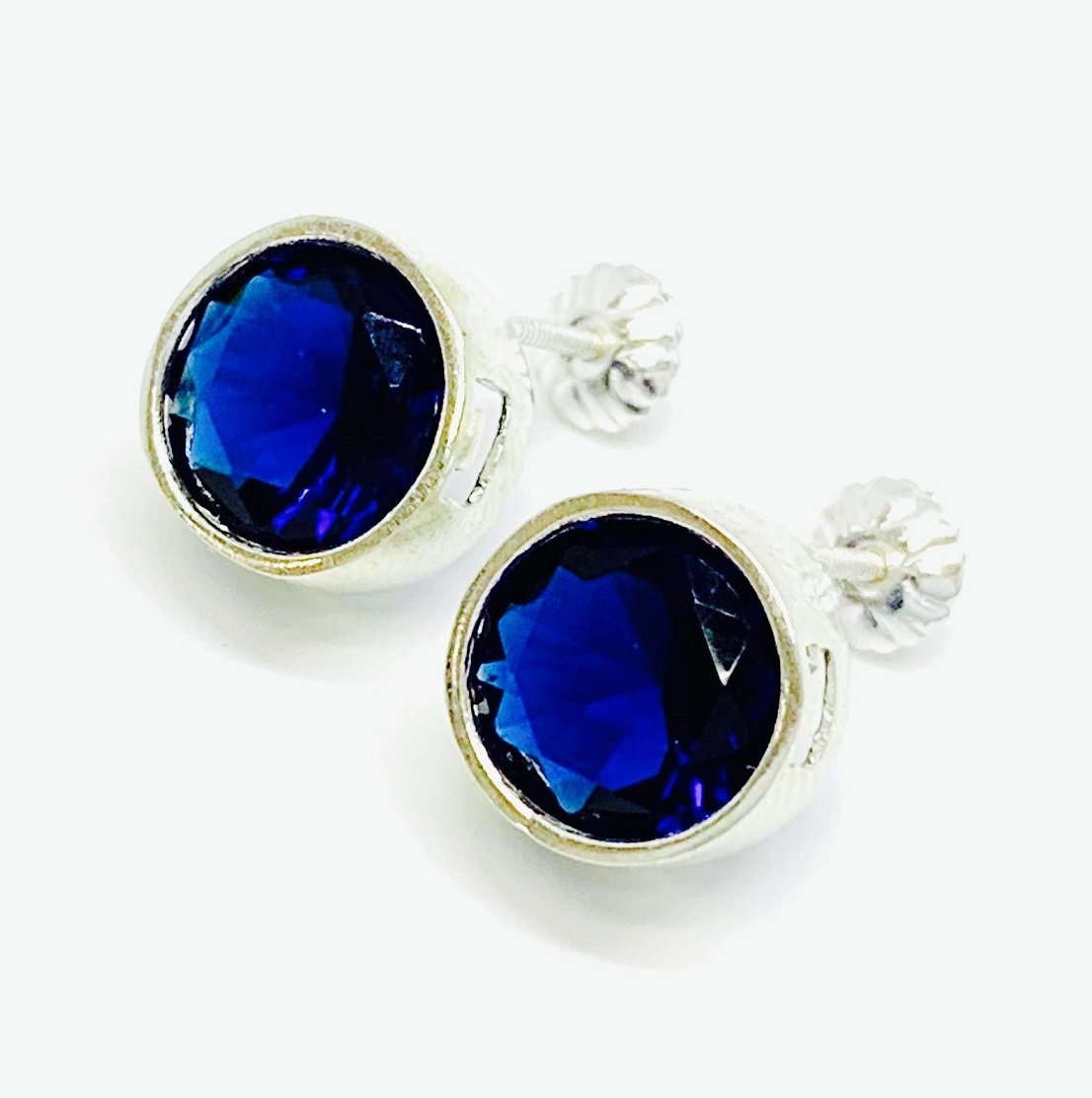 Aros Susanita a Rosca con cubic Zafiro 10mm Plata 925