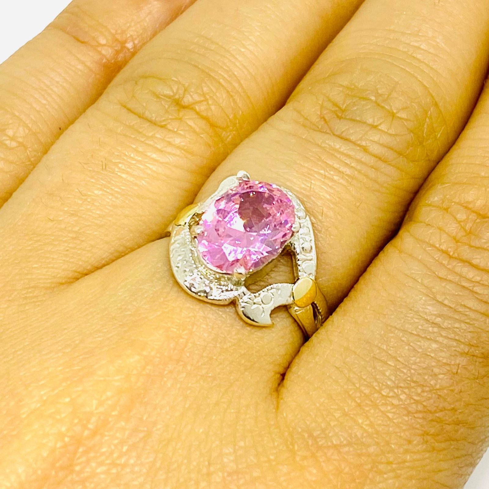 Anillo Carla con cubic rosa ovalado Plata y Oro