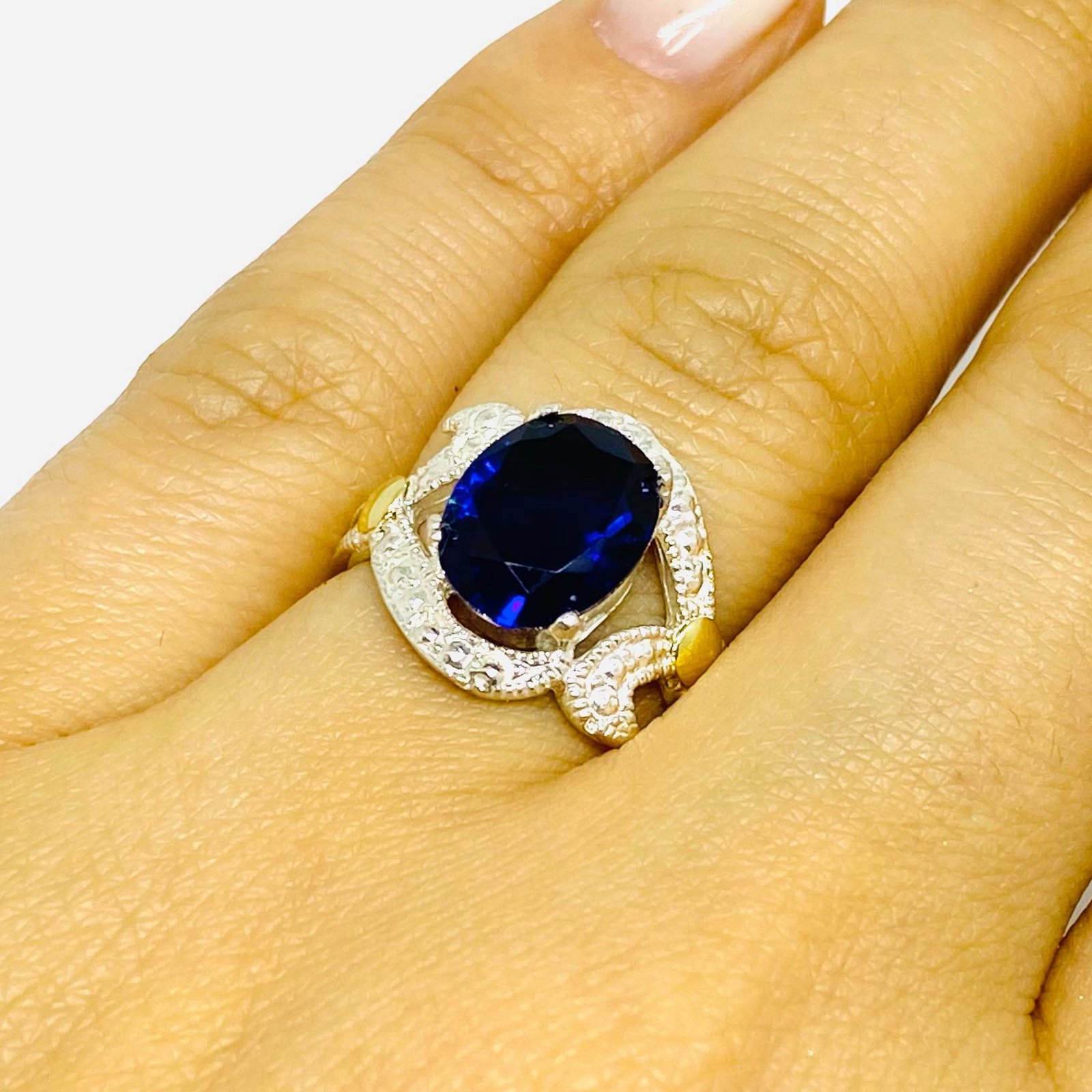 Anillo Carla con cubic zafiro ovalado Plata y Oro