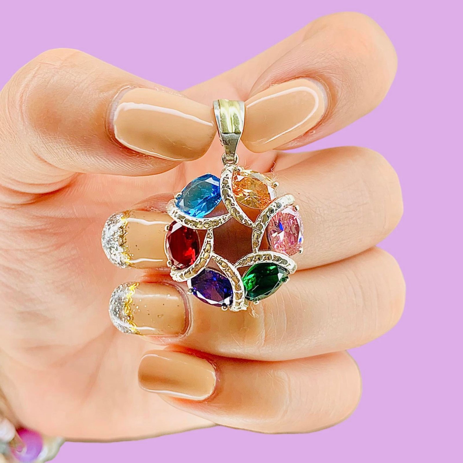 Dije Bianca con cubic Multicolor 35mm de Plata y Oro