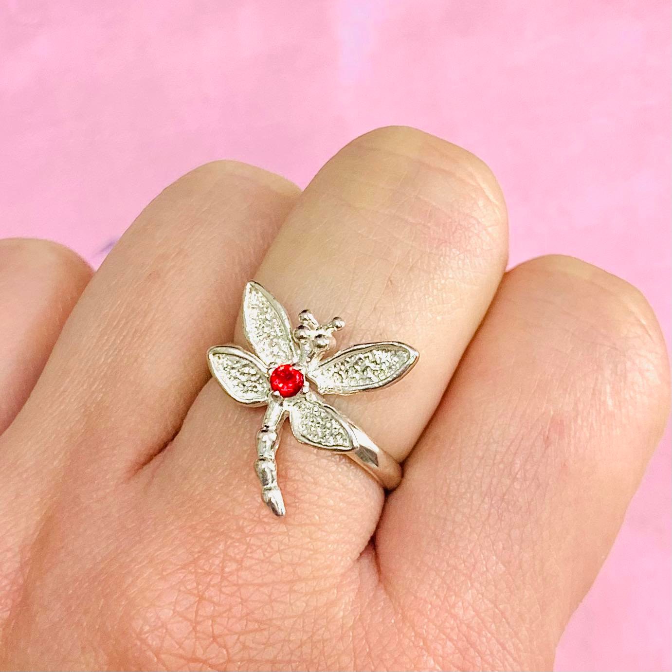 Anillo Libelula con cubic 3mm Rubi de Plata 925