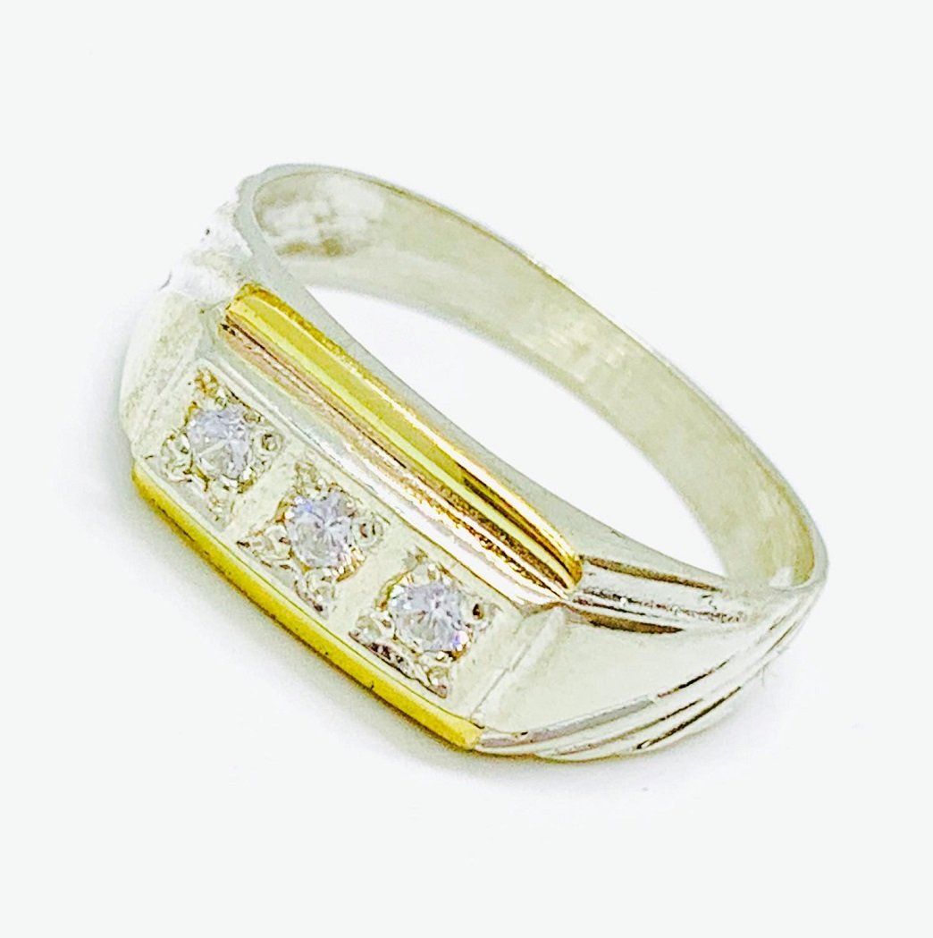 Artículo: AP 099-1Anillo Rectangular Triple cubic para hombre Plata y Oro