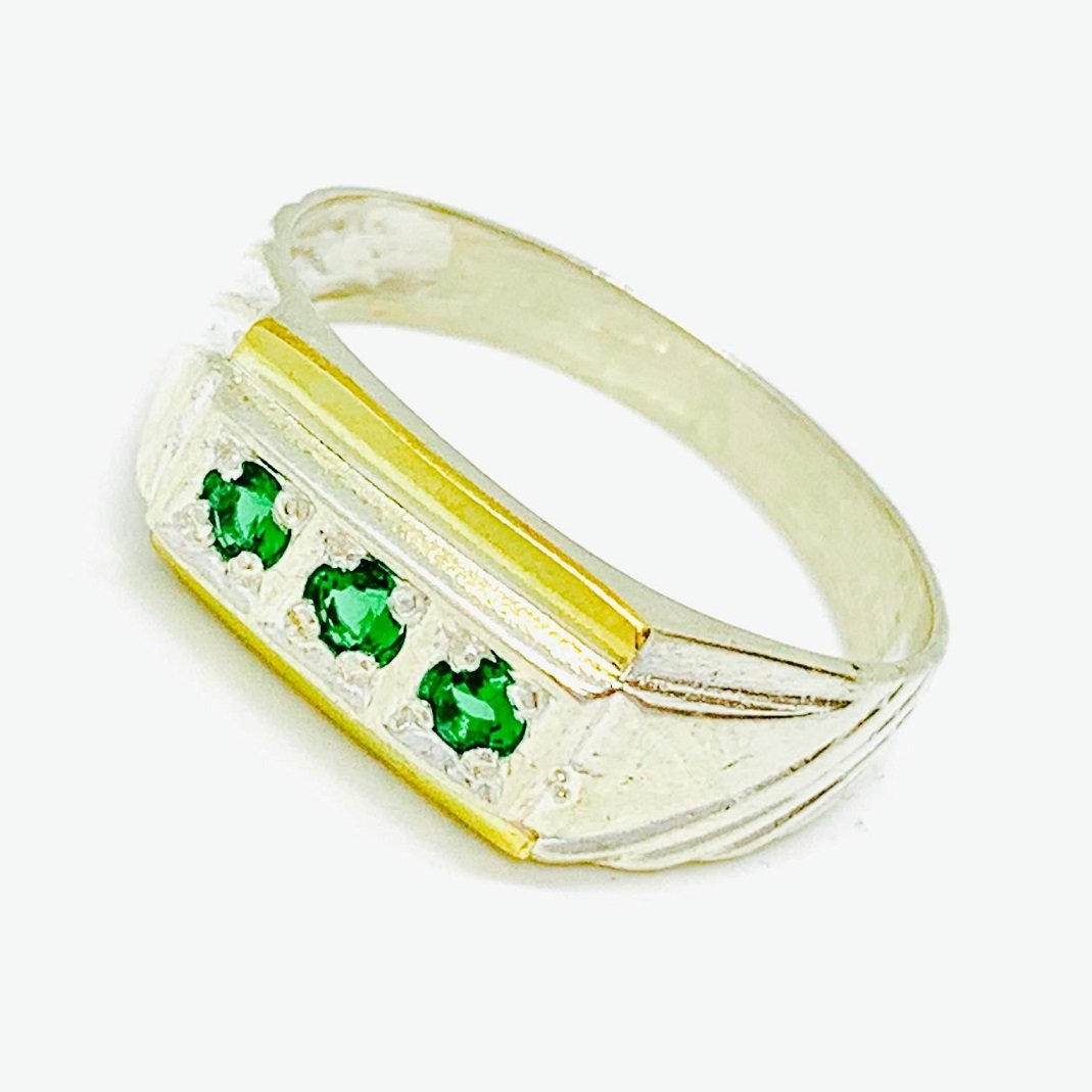 Anillo Rectangular Triple cubic Unisex Esmeralda Plata y Oro