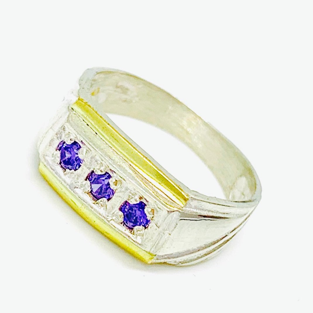 Anillo Rectangular Triple cubic Unisex amatista Plata y Oro