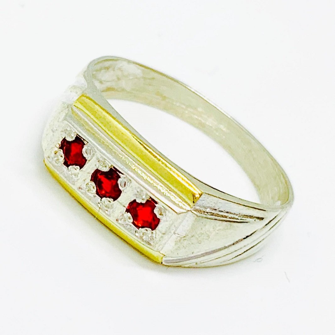 Anillo Rectangular Triple cubic Unisex Rubi Plata y Oro