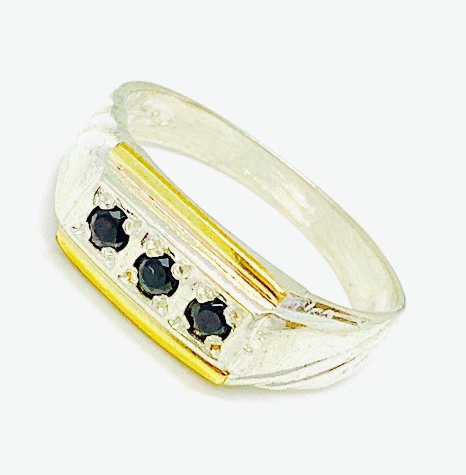 Artículo: AP 099-7Anillo Rectangular Triple cubic para hombre Plata y Oro
