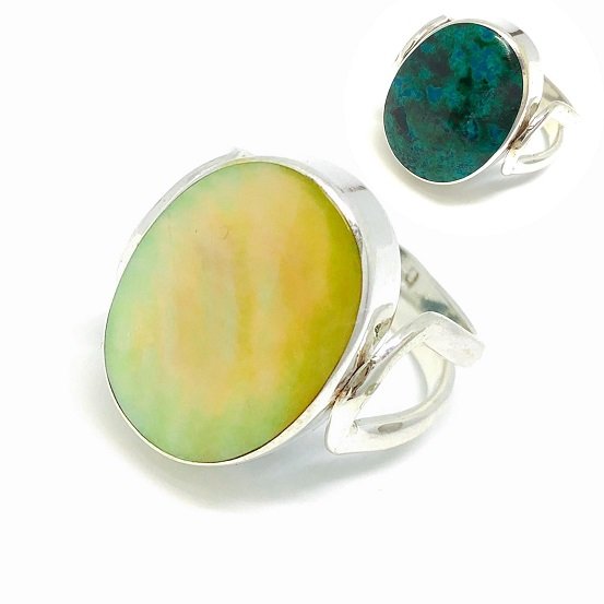 Anillo de Plata Peruana Doble Cara con Piedras Naturales