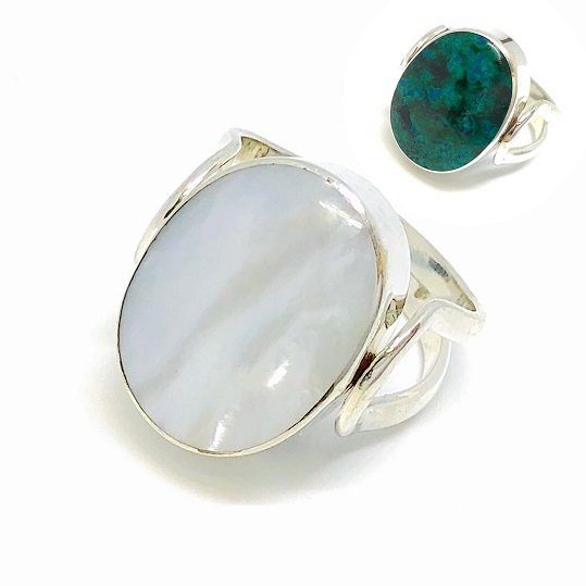 Anillo de Plata Peruana Doble Cara con Piedras Naturales