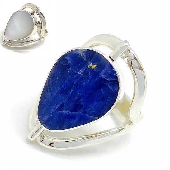 Anillo de Plata Peruana Doble Cara con Piedras Naturales