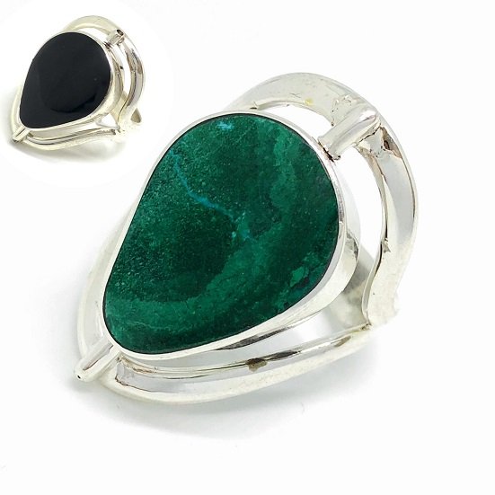Anillo de Plata Peruana Doble Cara con Piedras Naturales