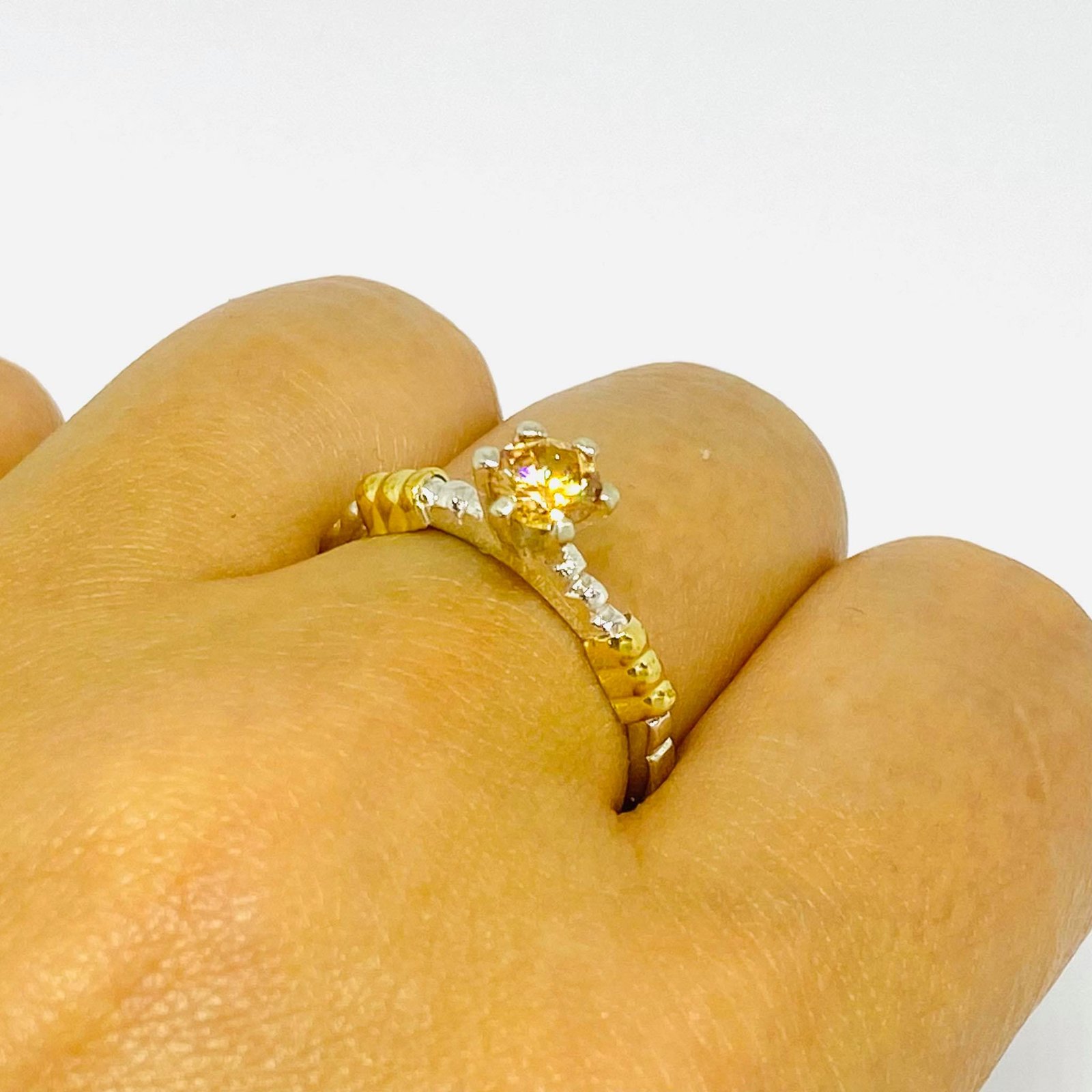 Anillo de compromiso con cubic 5mm ambar Plata y Oro
