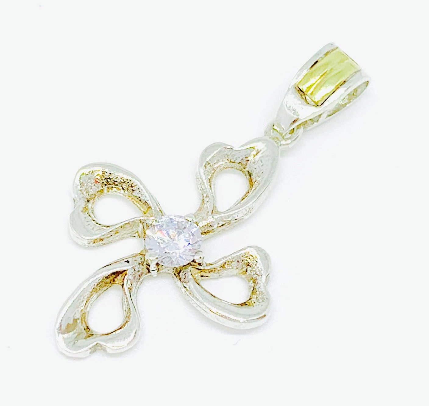 Dije Cruz con cubic Blanco de Plata y Oro