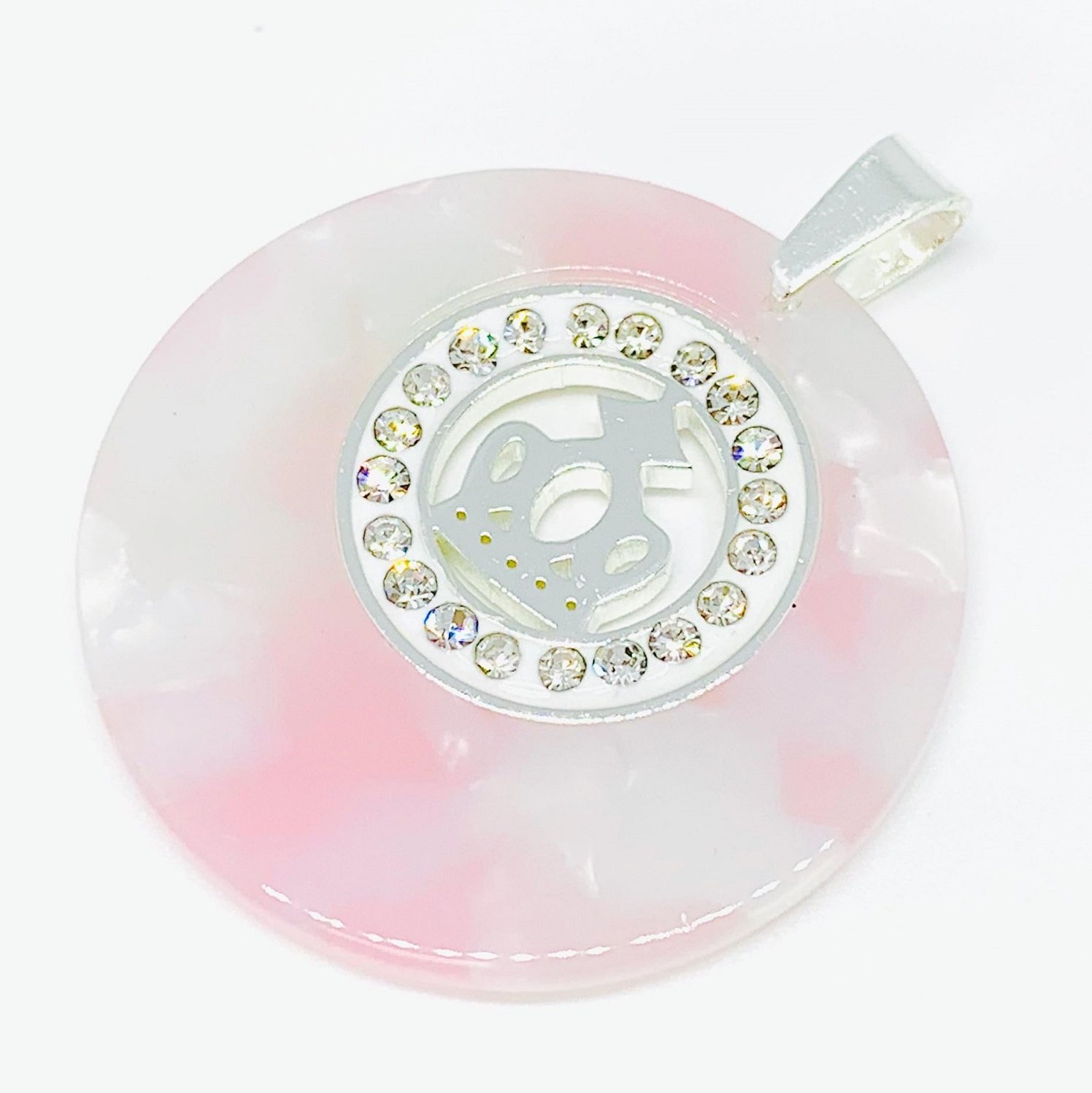 Dije Redondo piedra rosa con Corona- 38mm de Acero Blanco