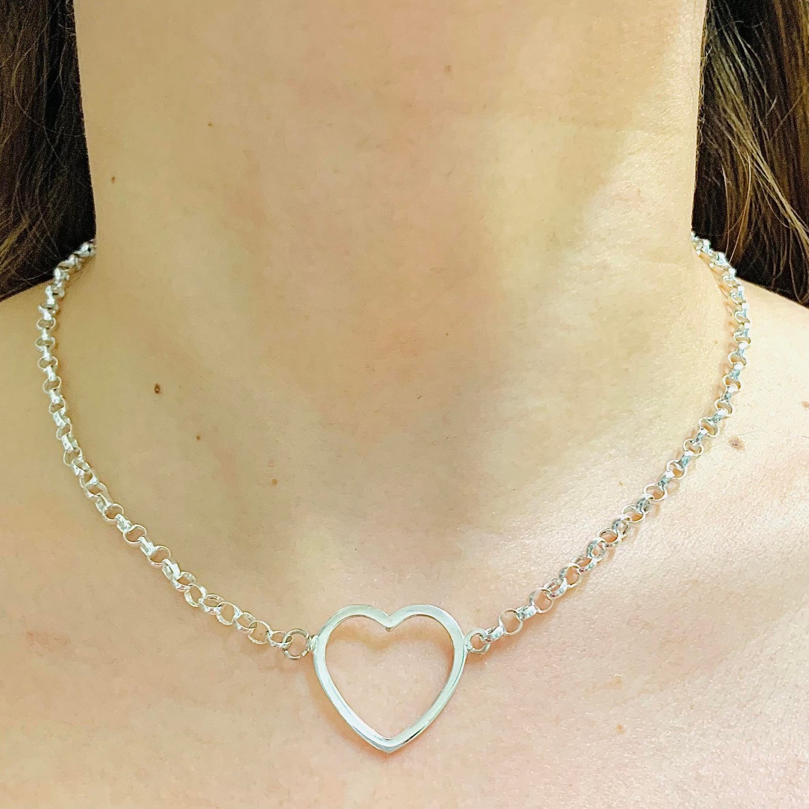 Cadena Rolo con Corazon Calado grande Plata 925