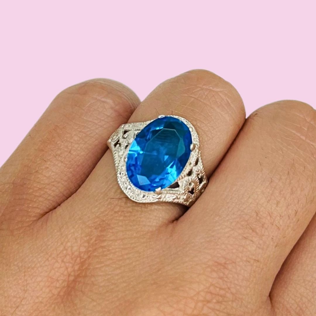 Anillo con Cubic Ovalado Grande Aguamarina de Plata 925