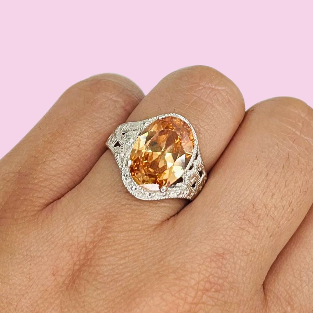 Anillo con Cubic Ovalado Grande Ambar de Plata 925