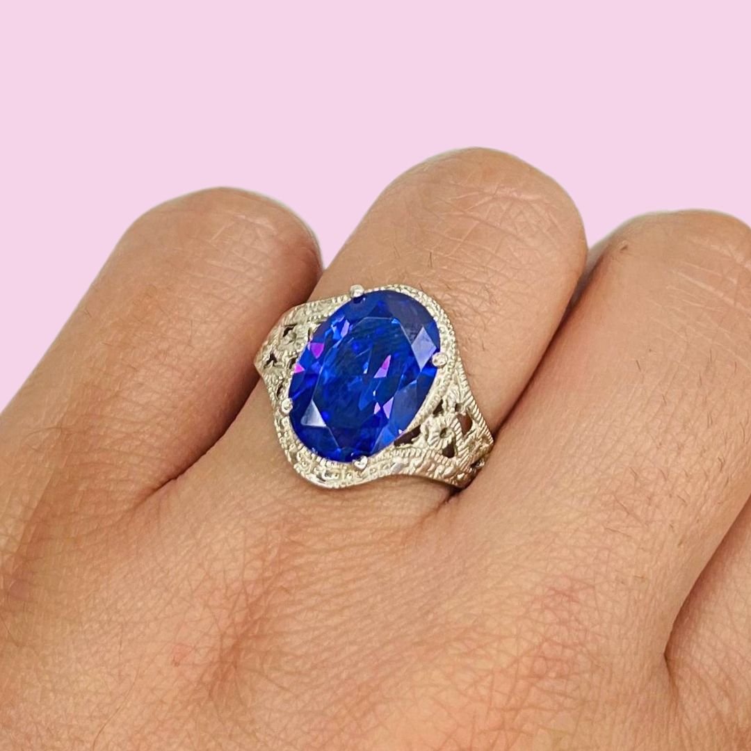 Anillo con Cubic Ovalado Grande Amatista de Plata 925