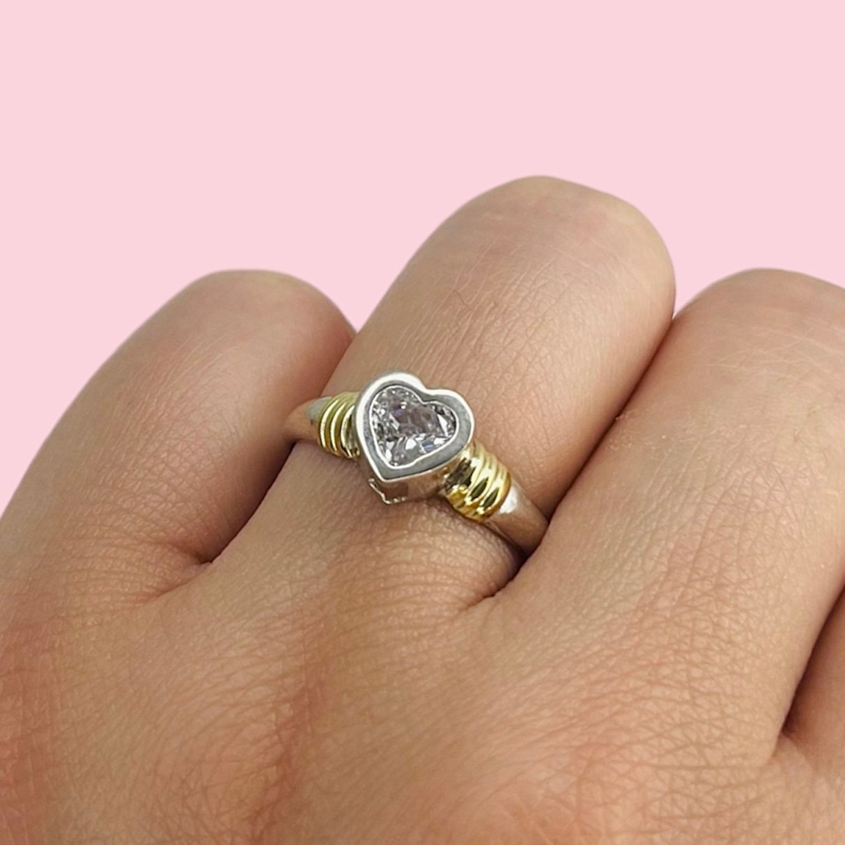 Anillo corazon 8mm Blanco de Plata y Oro