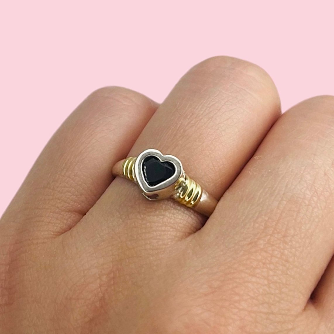 Anillo corazon 8mm negro de Plata y Oro