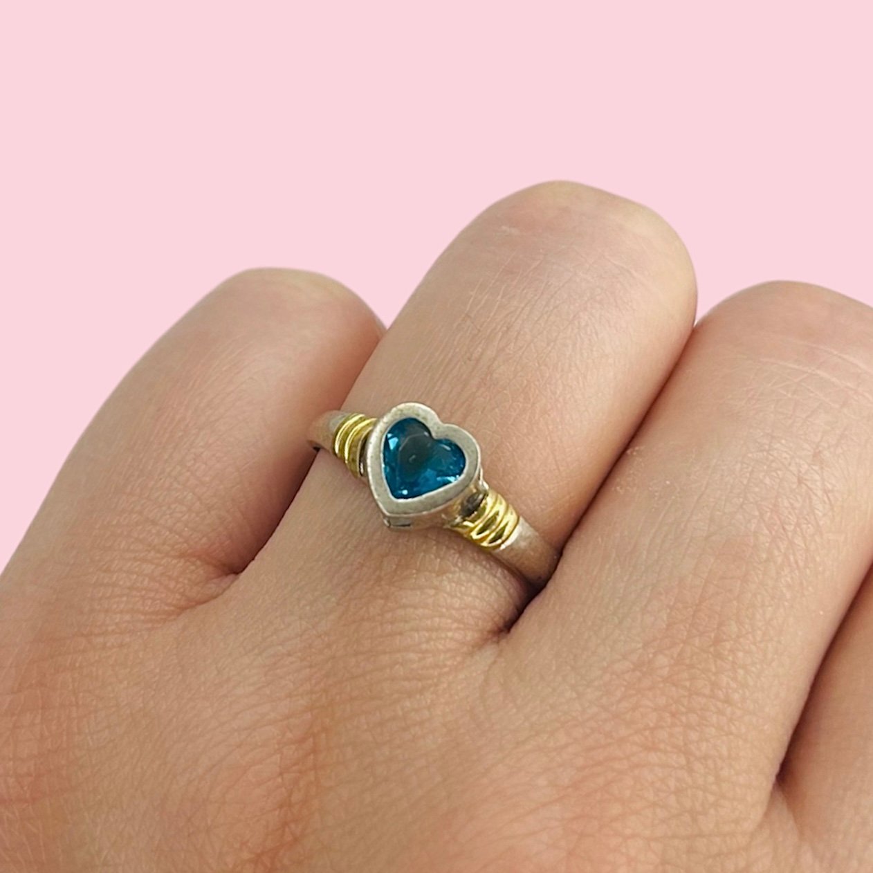 Anillo corazon 8mm Aguamarina de Plata y Oro