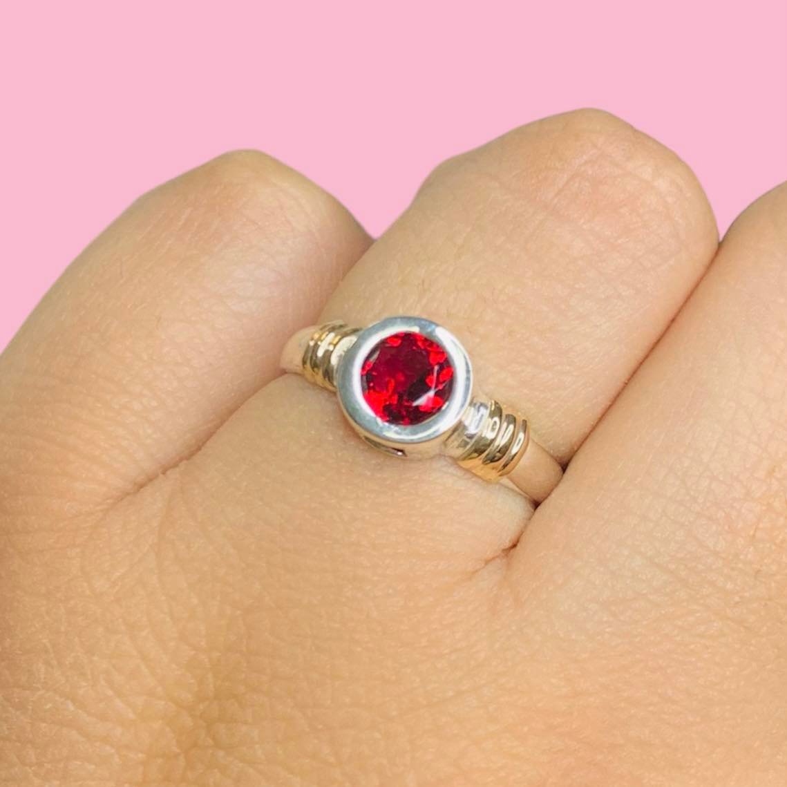 Anillo Redondo 8mm Rubi de Plata y Oro