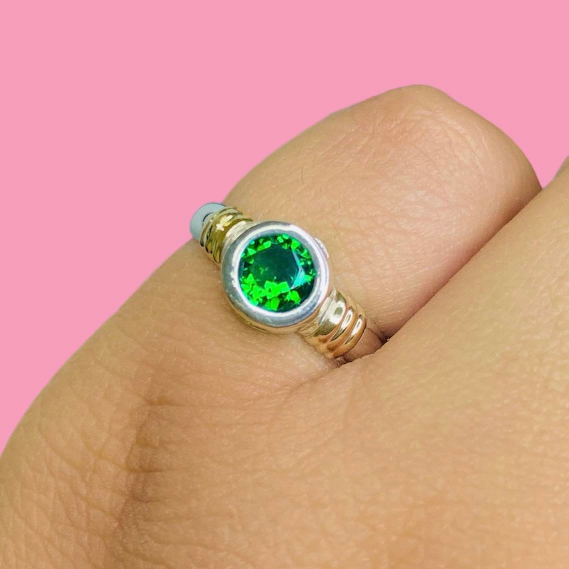 Anillo Redondo 8mm Esmeralda de Plata y Oro