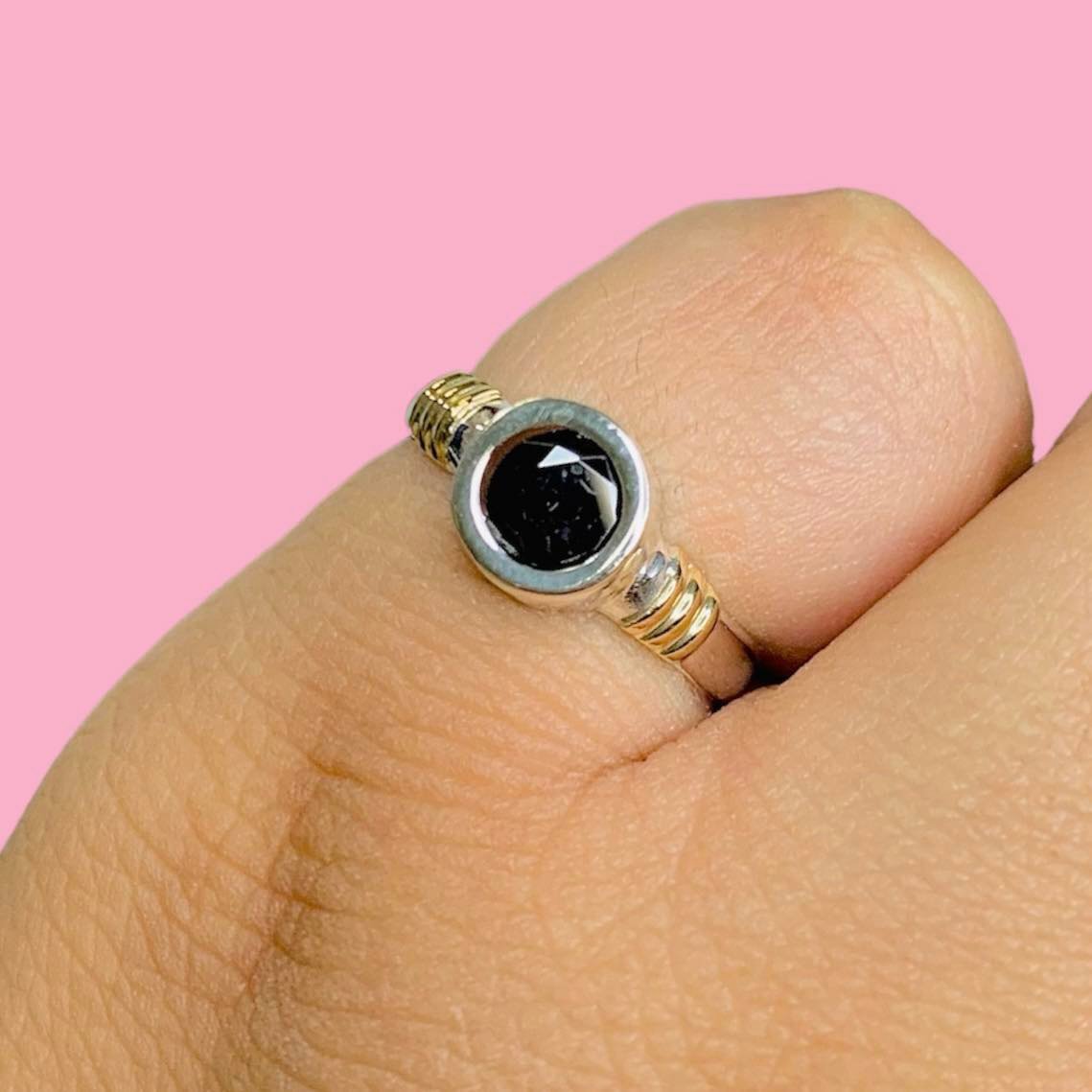 Anillo Redondo 8mm Negro de Plata y Oro