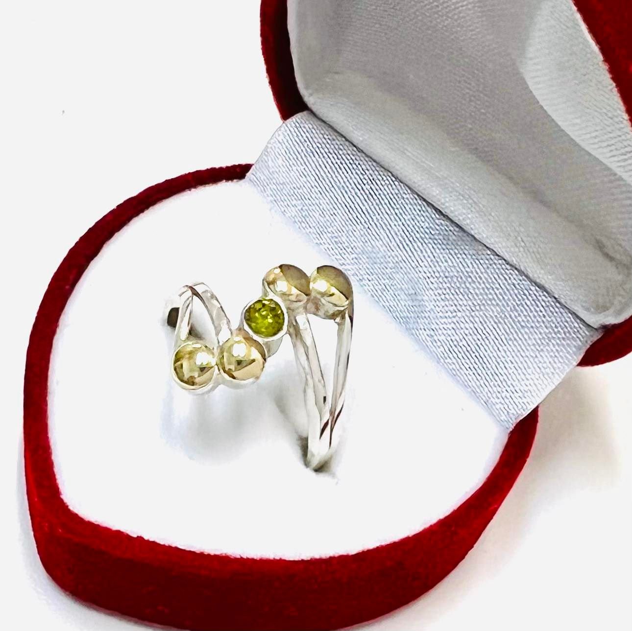 anillo zic zac con cubic peridoto de Plata y Oro